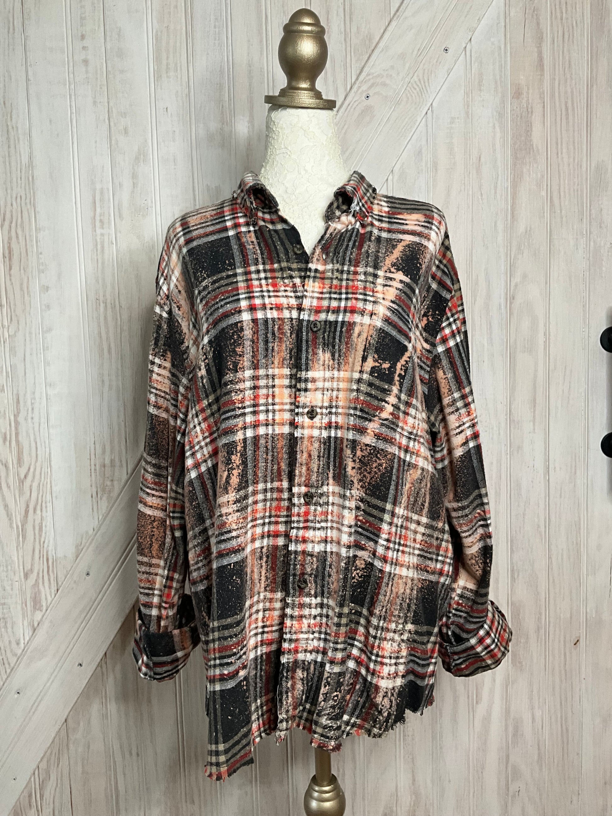 This Distressed Cotton Flannel Shirt combines comfort with cool vibes. Made from soft, breathable cotton, it features a vintage-washed, hand-distressed finish that feels perfectly lived-in. The eye-catching sewn-on graphic patch on the back adds a fun, bold touch to your look. Whether layered up or worn solo, this flannel brings casual style with a playful edge—perfect for turning heads and keeping things comfy all day long.
