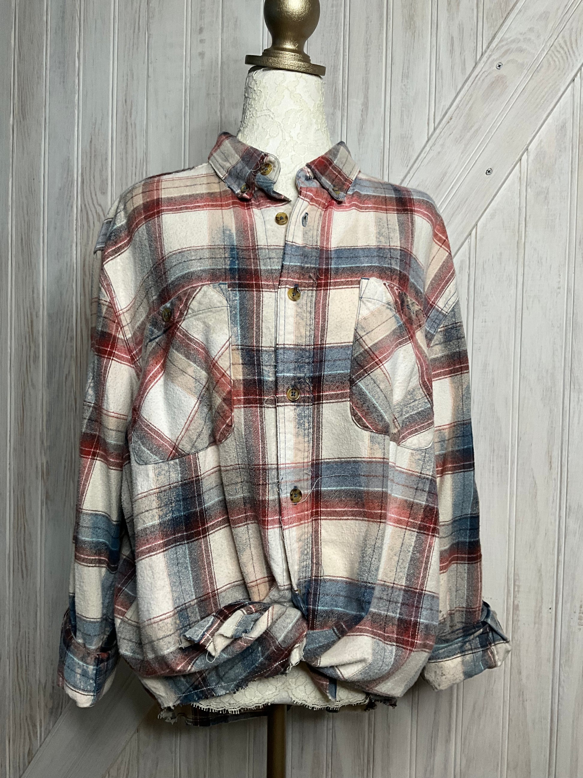 This Distressed Cotton Flannel Shirt combines comfort with cool vibes. Made from soft, breathable cotton, it features a vintage-washed, hand-distressed finish that feels perfectly lived-in. The eye-catching sewn-on graphic patch on the back adds a fun, bold touch to your look. Whether layered up or worn solo, this flannel brings casual style with a playful edge—perfect for turning heads and keeping things comfy all day long.