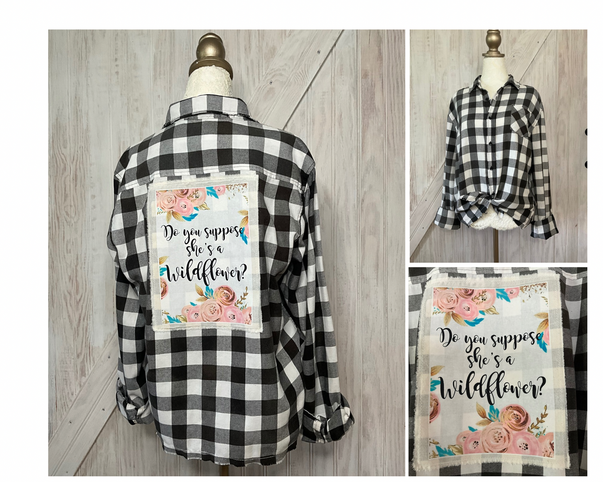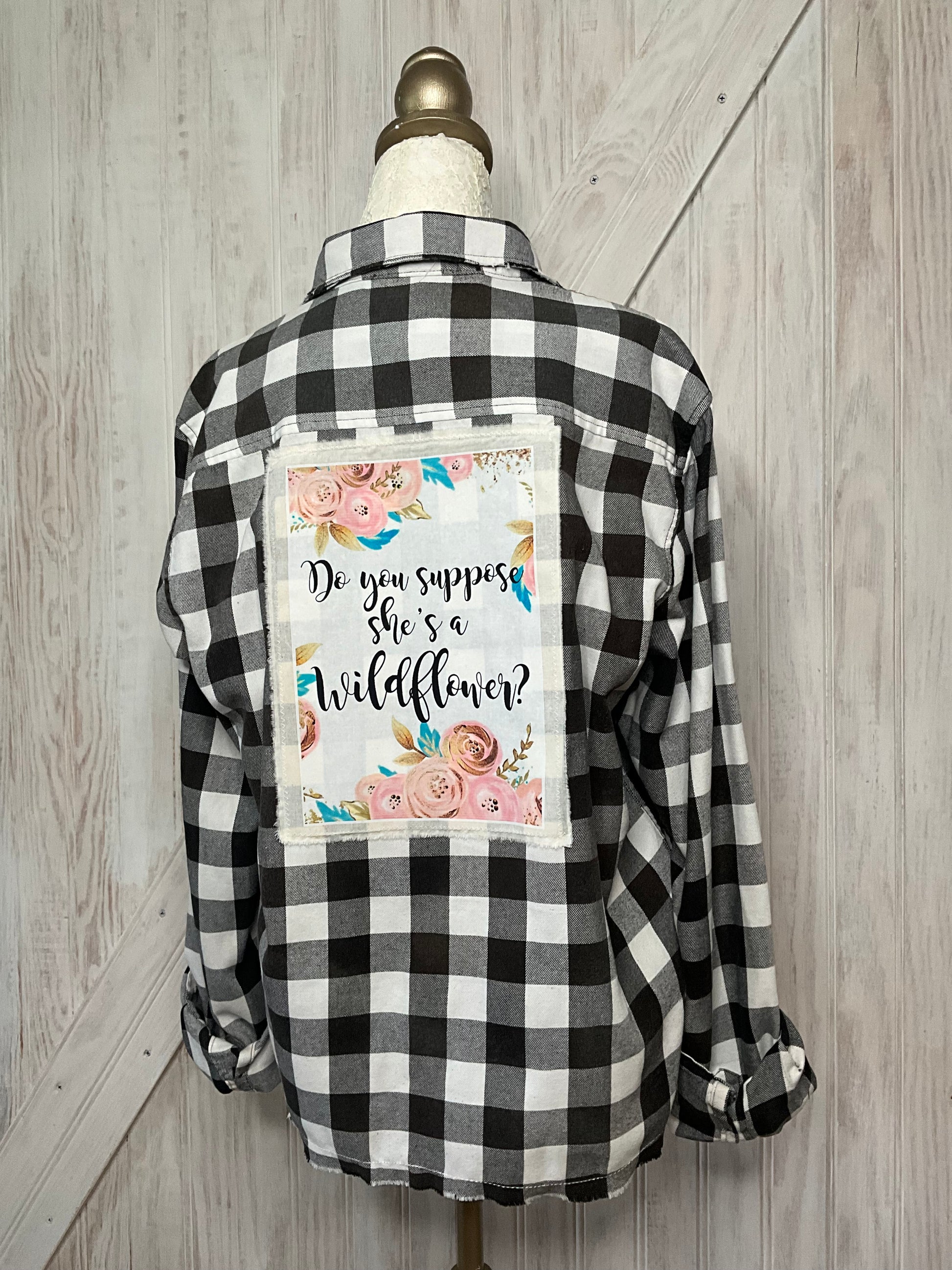 This Distressed Cotton Flannel Shirt combines comfort with cool vibes. Made from soft, breathable cotton, it features a vintage-washed, hand-distressed finish that feels perfectly lived-in. The eye-catching sewn-on graphic patch on the back adds a fun, bold touch to your look. Whether layered up or worn solo, this flannel brings casual style with a playful edge—perfect for turning heads and keeping things comfy all day long.